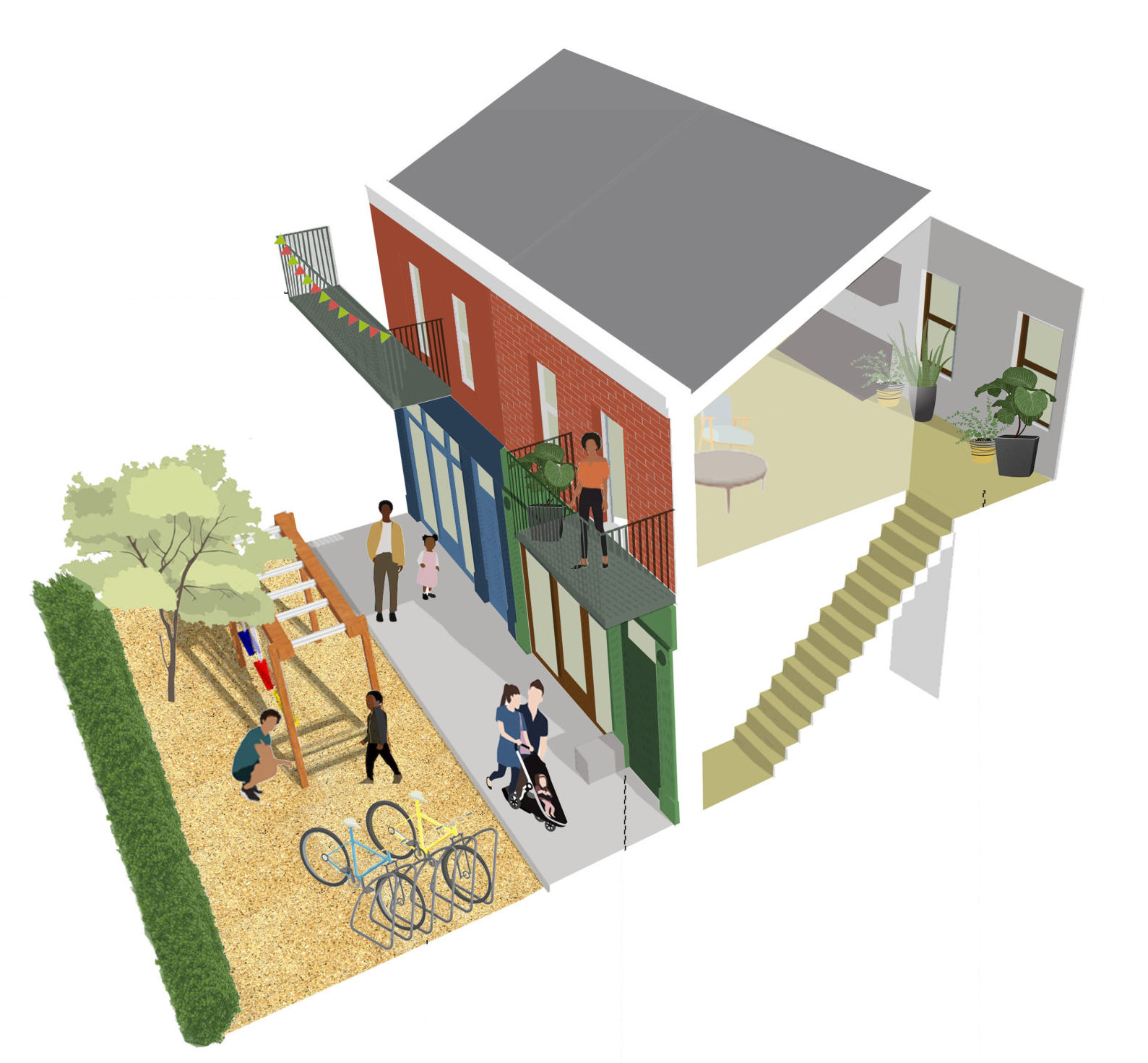 We feel the most positive impact within the home itself would be the ability to somehow offer external amenity space. Living through the pandemic made everyone aware of the importance of external amenity space, and these homes should be no different. If this is not possible through existing external arrangements then existing buildings could be retrofitted with small cantilevered balconies to the street. This would give the much needed amenity space to the homes while also allowing for increased surveillance and activity to the street.
