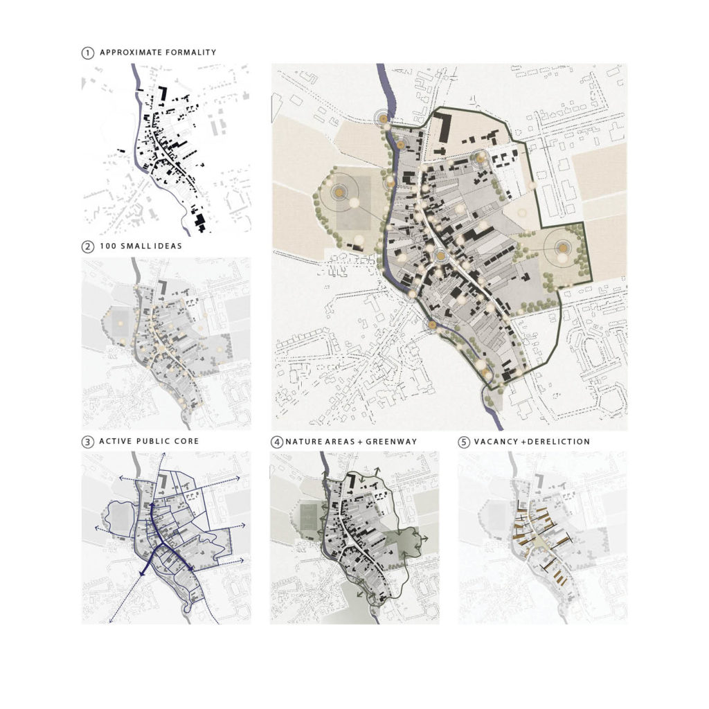 We are suggesting Mountrath in county Laois, as a testing ground for ideas for housing that could be applied to any Irish town. New plans can be about small-scale ideas in all kinds of places. The exhibition explores a number of modes of living, typical to towns, in order to draw out their potential in an inventive and pragmatic way. It identifies 100 small ways to make a difference; decisions and actions that could be employed incrementally over time.